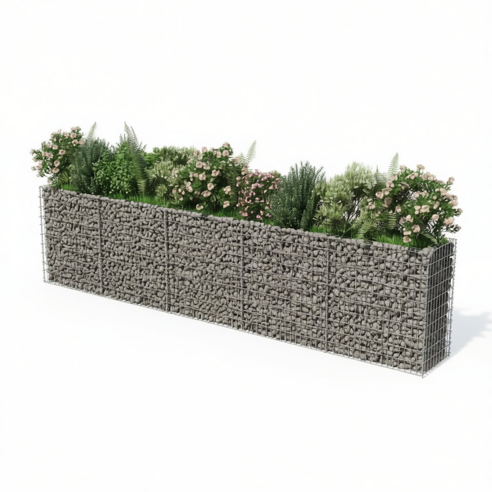 Gabion Raised Bed 177.2x19.7x39.4 Inch Silver Galvanized Steel Garden Planter Rustic Style