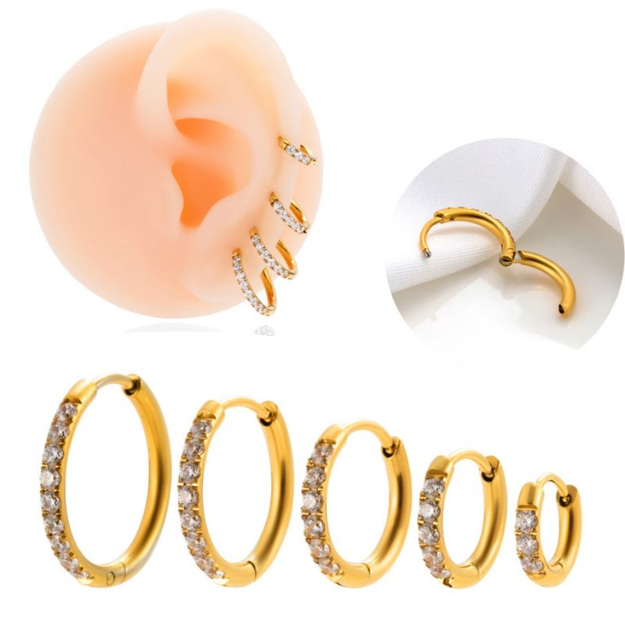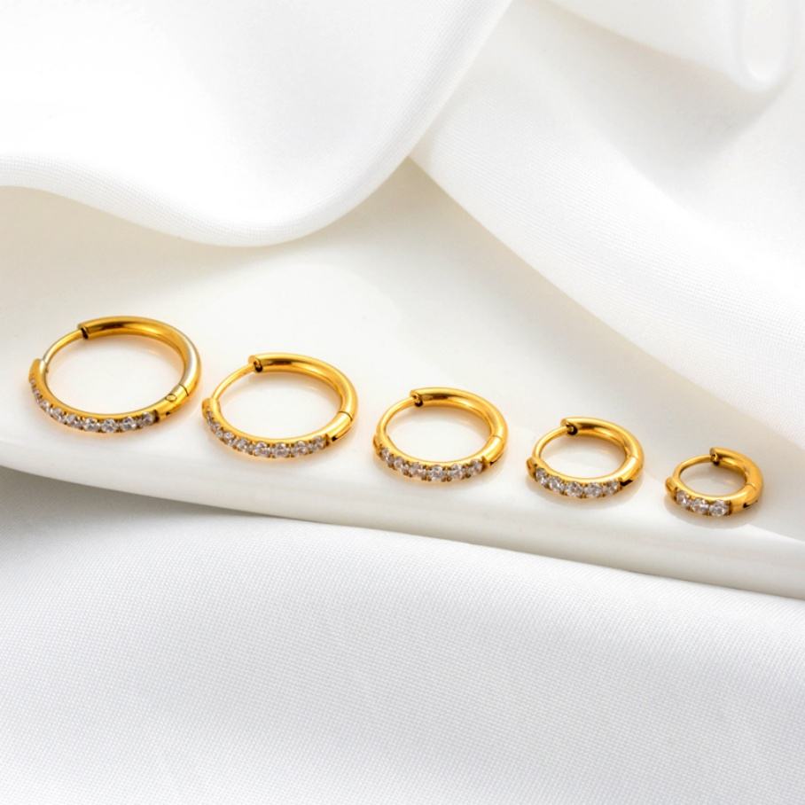 เครื่องประดับแฟชั่น Gaby ต่างหูห่วงสแตนเลสชุบทอง 18K สไตล์เกาหลีทันสมัย ประดับเพชรซิร์คอน เหมาะสำหรับงานหมั้น งานแต่งงาน และเป็นของขวัญ