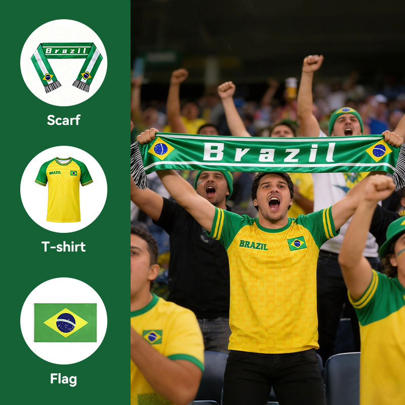 ผ้าพันคอแฟนบอลบราซิล แกฮูมิ 2026 รุ่นใหม่ ผ้าพันคอฟุตบอลแบบกำหนดเอง โลโก้ฟุตบอลสั่งทำ