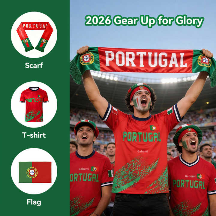 ผ้าพันคอฟุตบอล Gahumi 2026 ทีมชาติโปรตุเกส สำหรับกีฬาฟุตบอลในอเมริกาเหนือ ราคาดีที่สุดสำหรับผ้าพันคอฟุตบอลแบบสั่งทำ