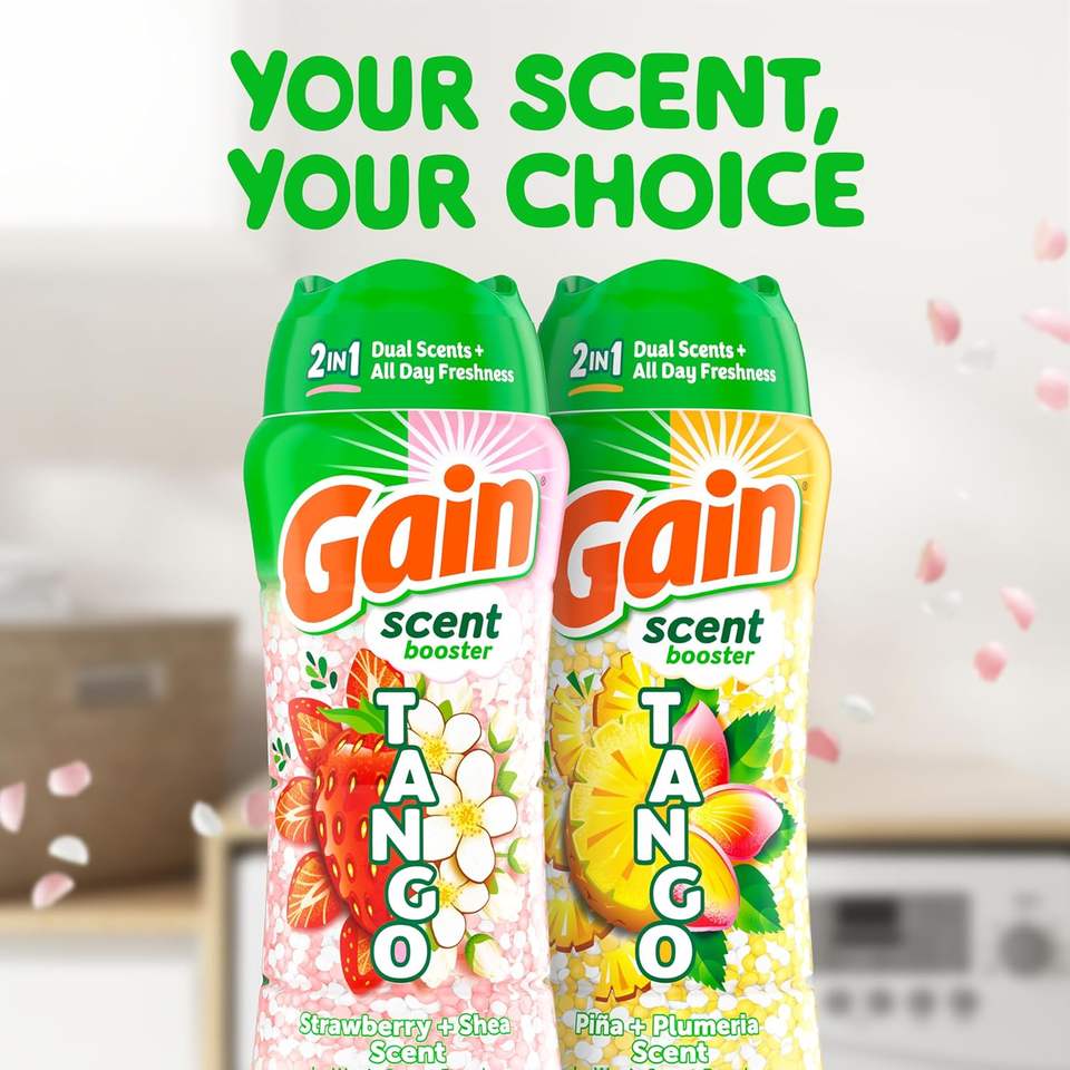 เม็ดบีดเพิ่มกลิ่นหอมสำหรับซักผ้า Gain Tango 2-in-1 กลิ่นสตรอว์เบอร์รีและเชียบัตเตอร์ ขนาด 21.1 ออนซ์ เม็ดบีดซักผ้าแบบสองกลิ่น