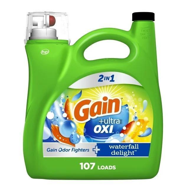 Gain Ultra Oxi Liquid Laundry Detergent, Waterfall Delight Scent, 154 Fl Oz, 107 Loads