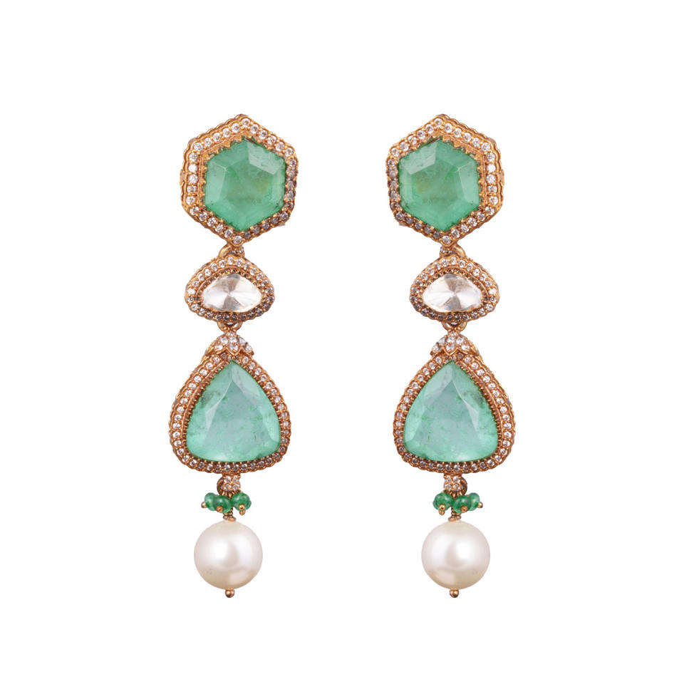 ชุดสร้อยคอและต่างหูเงินแท้ 925 ประดับมรกต Gajaah เครื่องประดับเงินแท้สำหรับเจ้าสาว งานเฉลิมฉลอง และงานปาร์ตี้สำหรับผู้หญิง