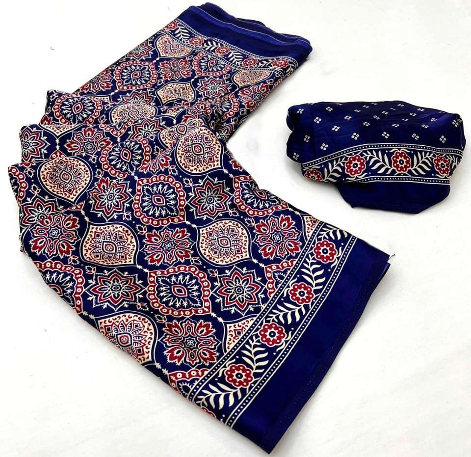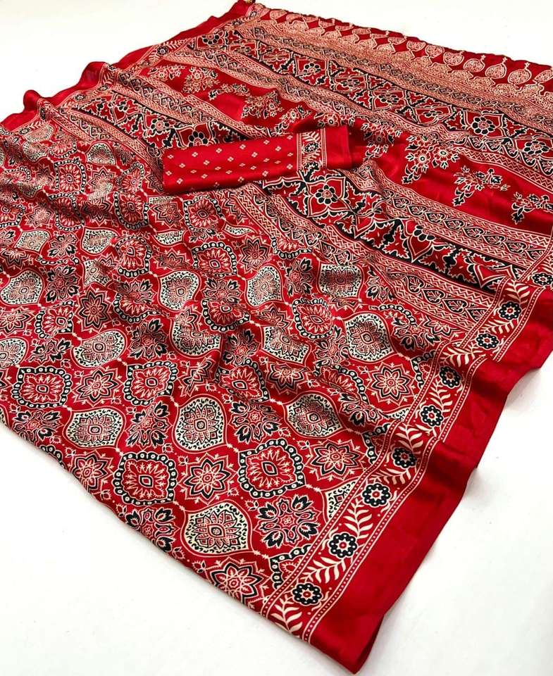 ผ้าไหม gajji ajrakh กับ bandhej Saree lagdi บริสุทธิ์ gajji ผ้าไหมนุ่ม Saree แฟนซี