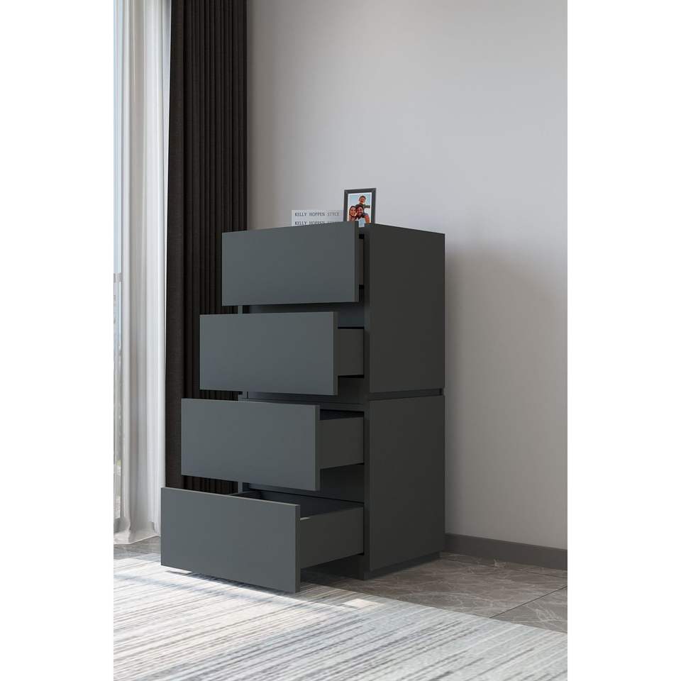 ตู้ลิ้นชัก 4 ชั้น รุ่น AE-2034 สีแอนทราไซต์ ยี่ห้อ Galata AekaOnline สไตล์โมเดิร์นหรูหราแบบนอร์ดิก ทำจากไม้ MDF โครงโลหะ ใช้เป็นโต๊ะข้างเตียงพร้อมที่เก็บของ