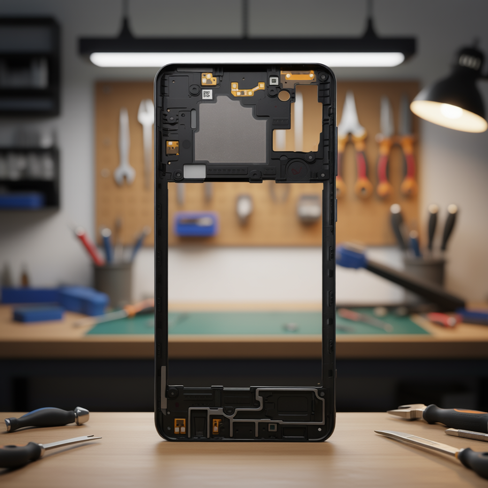 อะไหล่ฝาครอบกลาง A217F A21s กาแล็คซี่เฟรมสีดำตัวเครื่อง