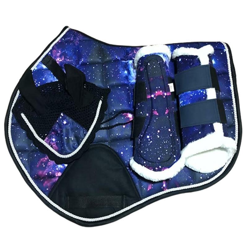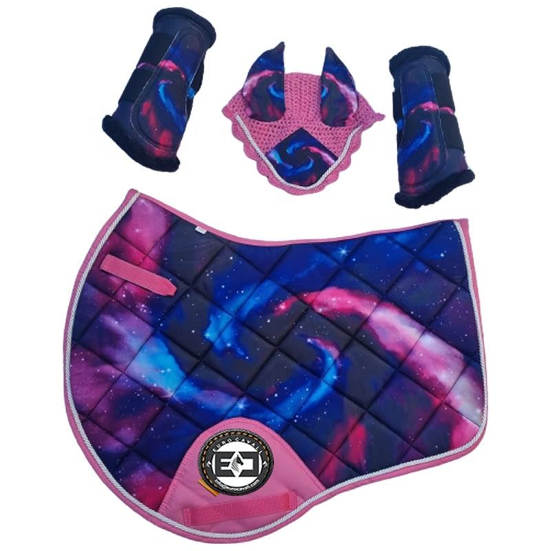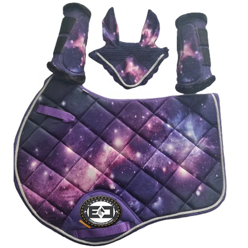 ชุดแผ่นรองอานม้าไม้ไผ่พร้อมสายสีดำโพลีเอสเตอร์ไส้ schabracke พิมพ์ซับลิเมชันออกแบบสำหรับ2025ขี่ม้า