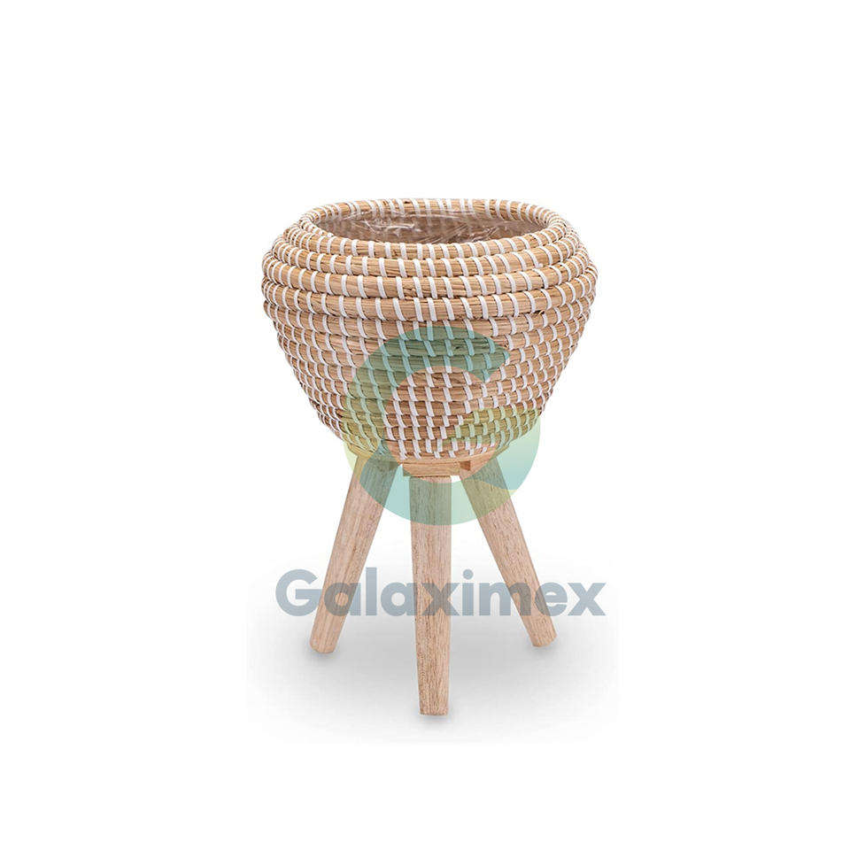 กาแล็กซี่แฮนดิคราฟท์ PP23 ชุดใหม่ 2 กระถางต้นไม้ไม้ไผ่ธรรมชาติแบบคลาสสิก พร้อมขาถอดได้ สำหรับใช้ในบ้านและสวน