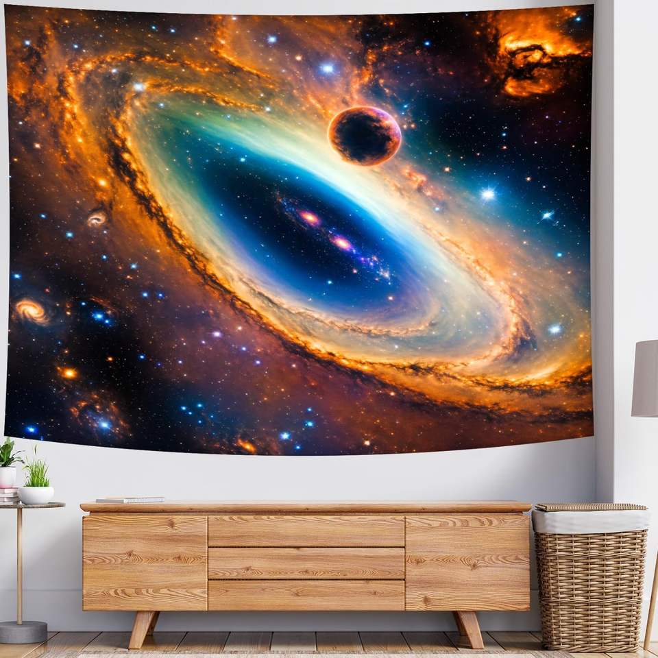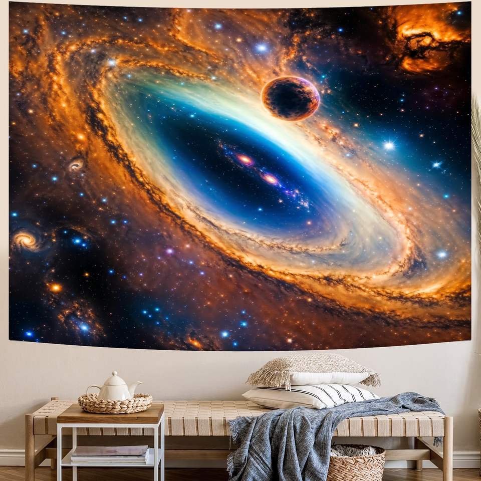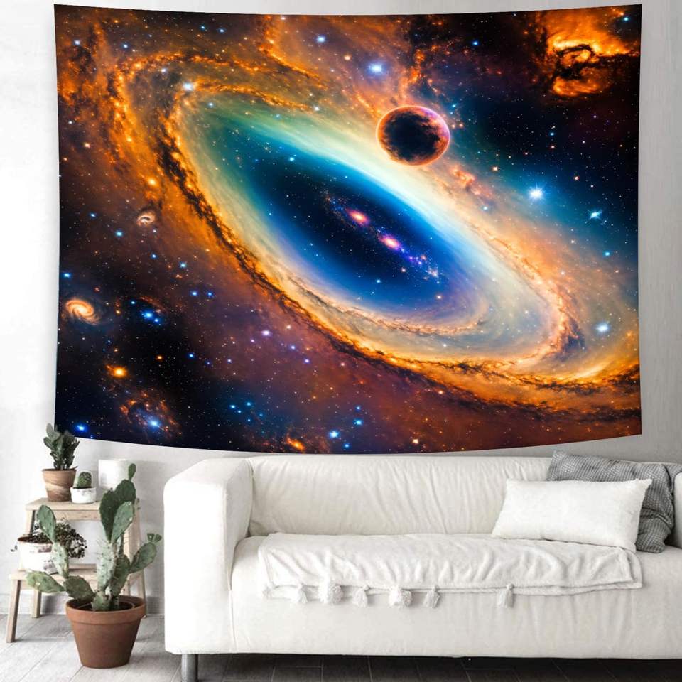 พรมลายกาแล็กซี จักรวาลเกลียววน ท้องฟ้าเต็มไปด้วยดวงดาว ดาวเคราะห์ ของตกแต่งผนัง ภาพลวงตา อวกาศภายนอก เนบิวลาจักรวาล