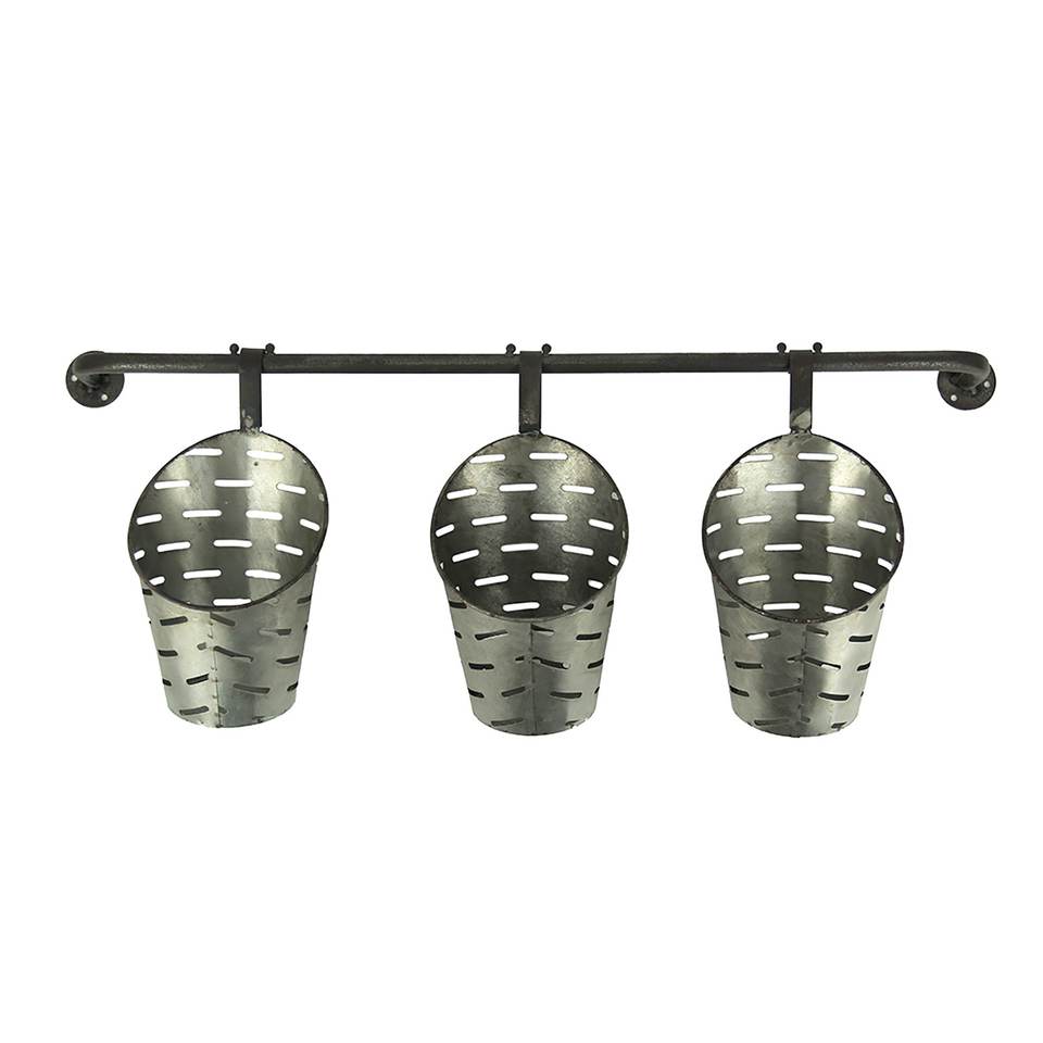 Galvanized Olive Bucket Wall Mounted Planter Set