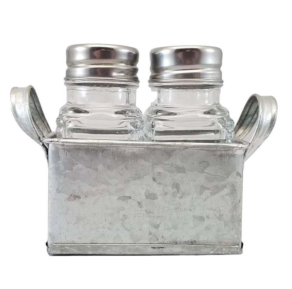 ชุดเชคเกอร์เกลือแคดดี้พร้อมที่จับไม้ที่ใส่เครื่องเทศและกระดาษชุบสังกะสีแบบชนบท