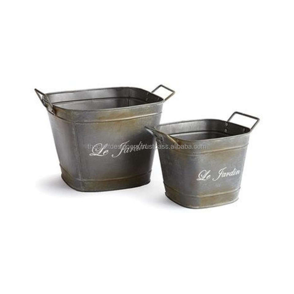 ชุดที่ปลูกต้นไม้ในสวนทำจากเหล็กแผ่นกัลวาไนซ์สองแผ่นพร้อมที่จับเชือกถังใส่ดอกไม้ขนาดใหญ่สำหรับกลางแจ้งและใช้ในบ้าน