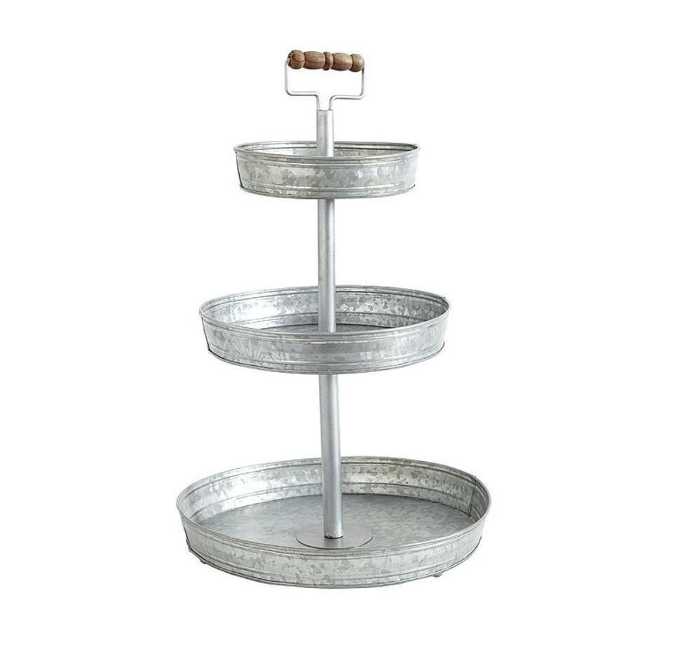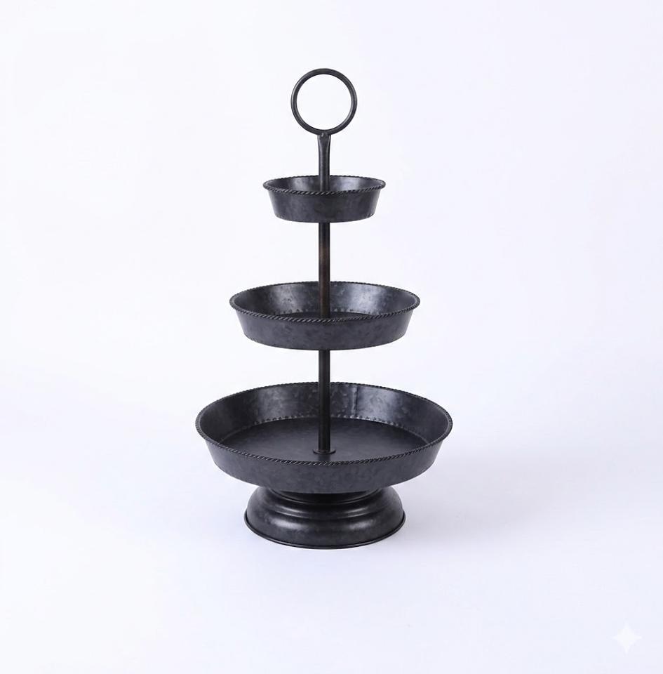 ชั้นวางของโลหะชุบสังกะสี 2 ชั้น พร้อมหูจับ สไตล์บ้านไร่ ถาดเหล็กตกแต่งสำหรับวางเค้ก คัพเค้ก สำหรับตกแต่งบ้าน
