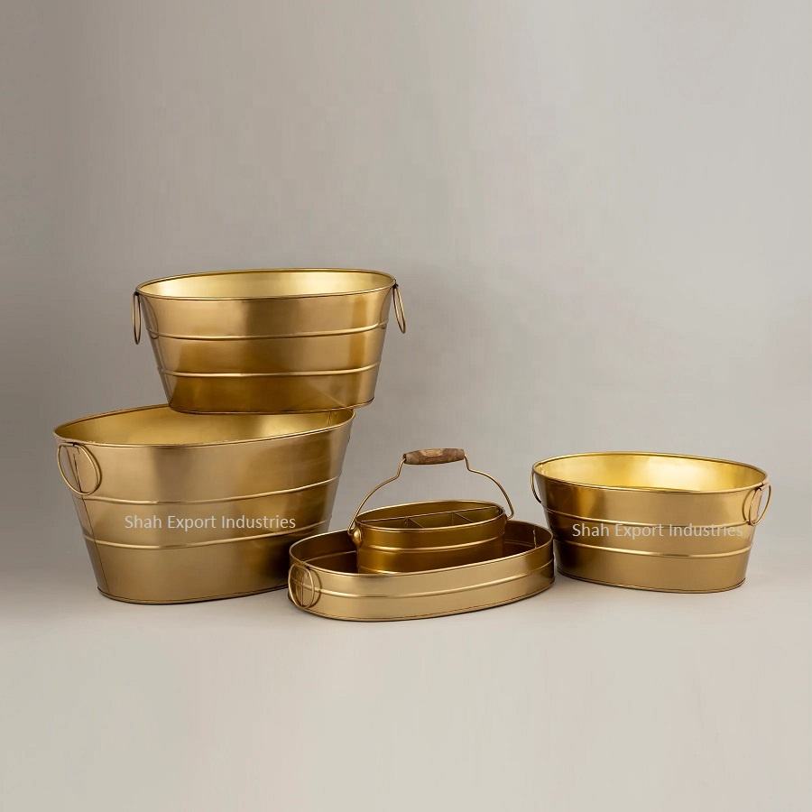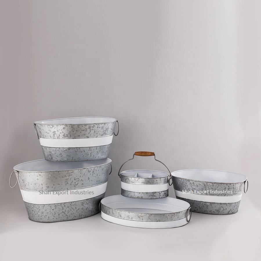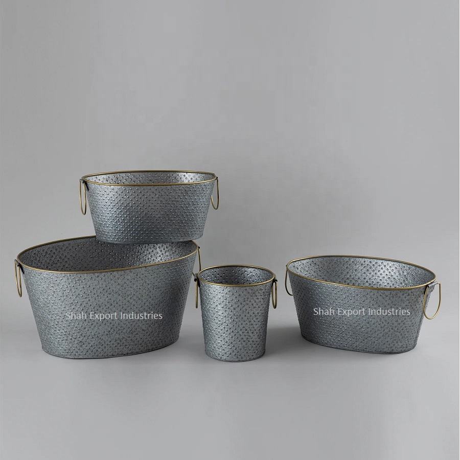 ชุดถังเหล็กชุบสังกะสีพร้อมที่จับสำหรับบาร์ปาร์ตี้ไนท์คลับชุดเครื่อง5ชิ้น