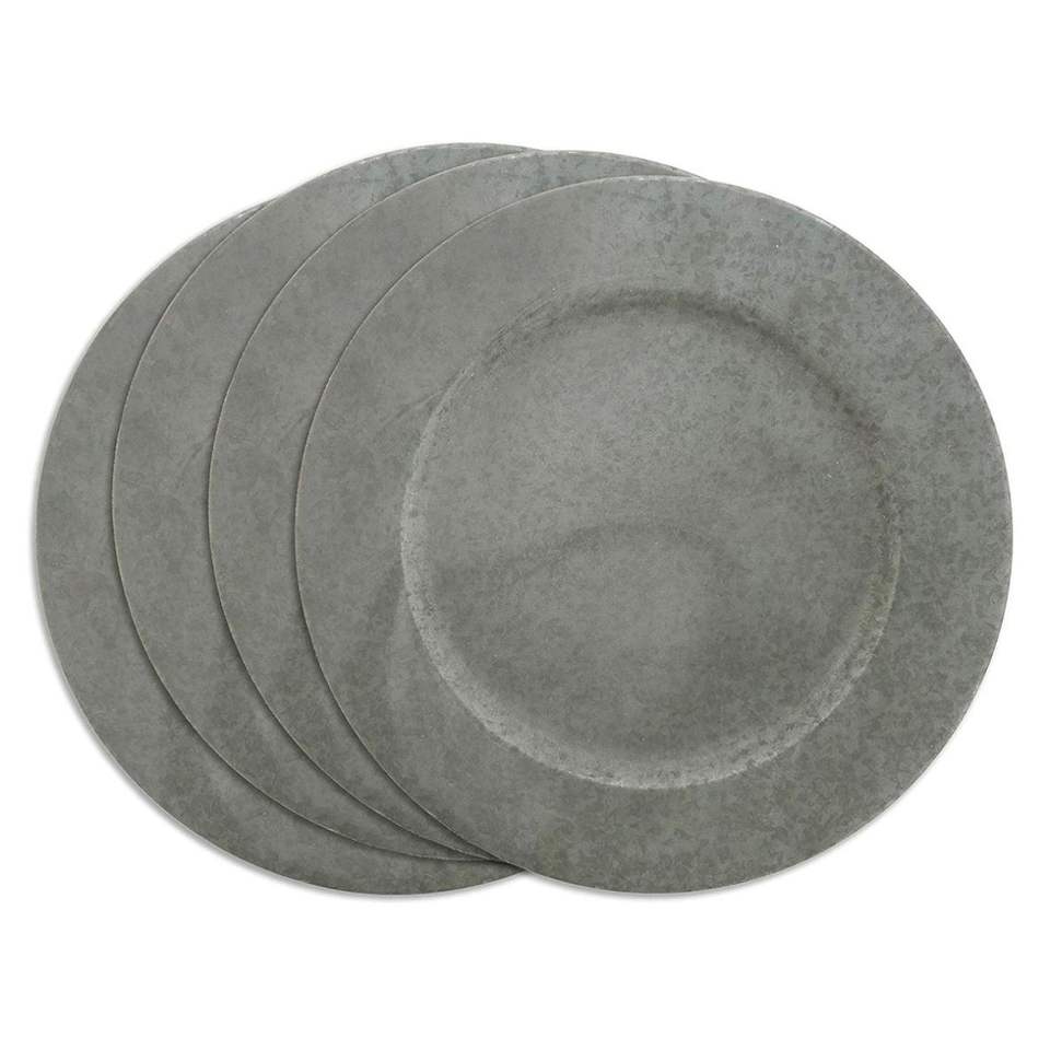 จานรองโลหะชุบสังกะสีแบบขายส่ง - จานรองทรงกลมขนาด 13 นิ้ว สไตล์เรียบง่ายสำหรับตกแต่งงานแต่งงานและจัดโต๊ะอาหารสไตล์ฟาร์มเฮาส์