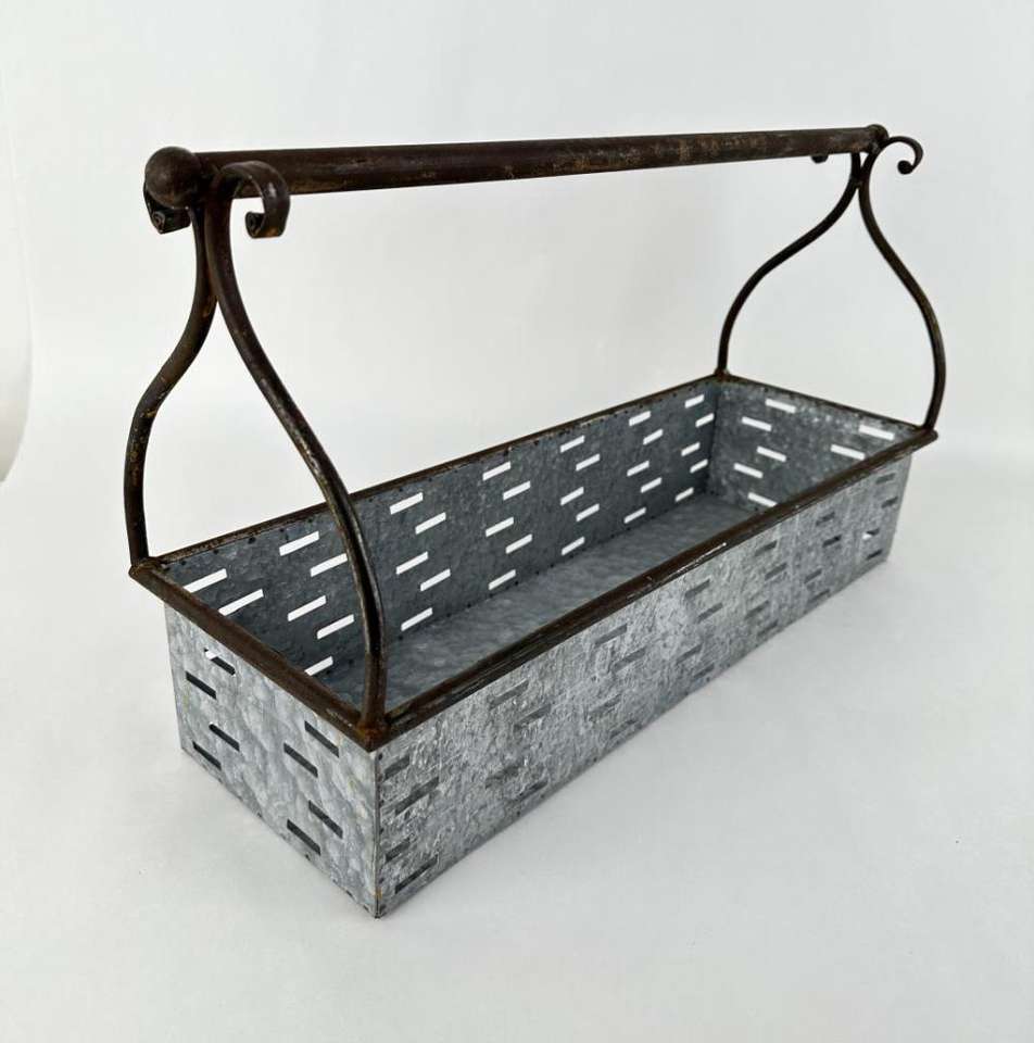 ถังมะกอกทำจากโลหะชุบสังกะสีพร้อมที่จับสีดำสำหรับตกแต่งบ้านที่เก็บของตกแต่งต้นไม้