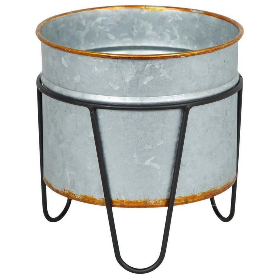 แปลงปลูกผักยกพื้นโลหะชุบสังกะสีพร้อมขาตั้ง สำหรับปลูกผักกลางแจ้งในลานบ้านและสวนหลังบ้าน สไตล์วินเทจ พร้อมชั้นวางของ