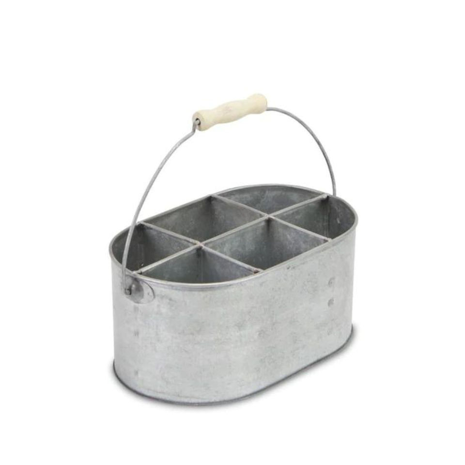 ที่ใส่ช้อนส้อมโลหะชุบสังกะสีพร้อมด้ามจับไม้แข็งแรง ใช้จัดเก็บในครัวและเป็นที่ใส่เครื่องปรุงสำหรับงานปาร์ตี้