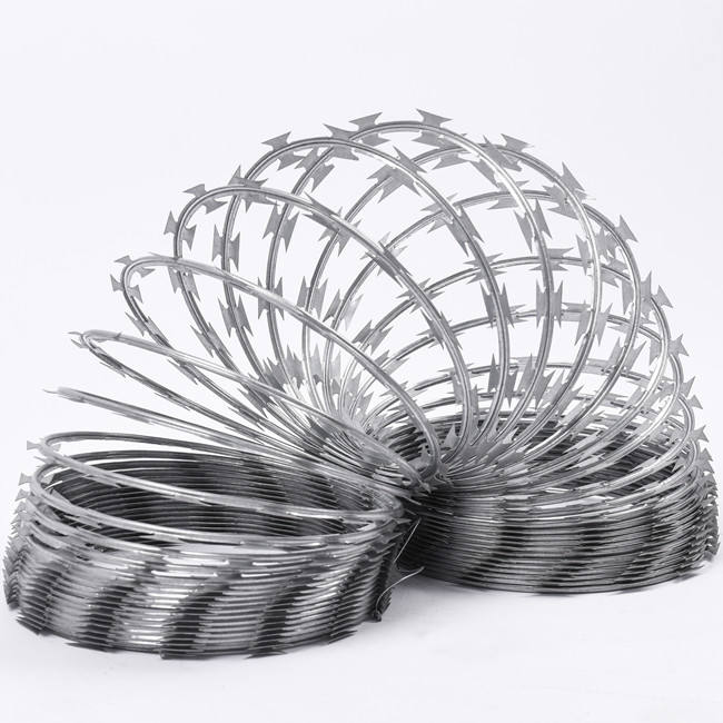 ขดลวดลวดหนามเคลือบพีวีซีชุบสังกะสีม้วนลวดมีดโกนแบบไขว้