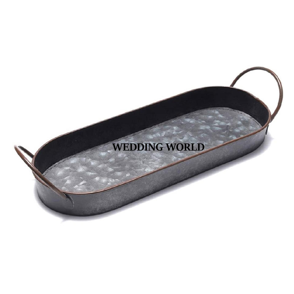 ถาดเสิร์ฟชุบสังกะสีทำด้วยมือทรงรีถาดเสิร์ฟโลหะสำหรับร้านอาหารหรูหราดีไซน์เนอร์ขายส่ง