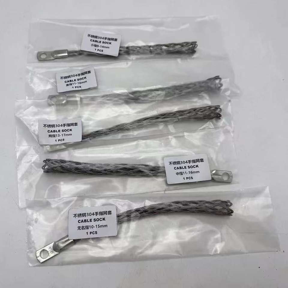 ตาข่ายลวดชุบสังกะสีแบบตาเดียวสำหรับดึงสายเคเบิล ปลอกดึงสายเคเบิล คลิปล็อคสายเคเบิล ถุงมือดึงสายเคเบิล นิ้วจีน