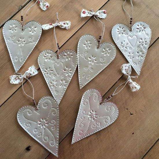 ดาวสังกะสีดีบุกและหัวใจห้อยด้วยรายละเอียดตัดออกสวยต้นคริสต์มาส