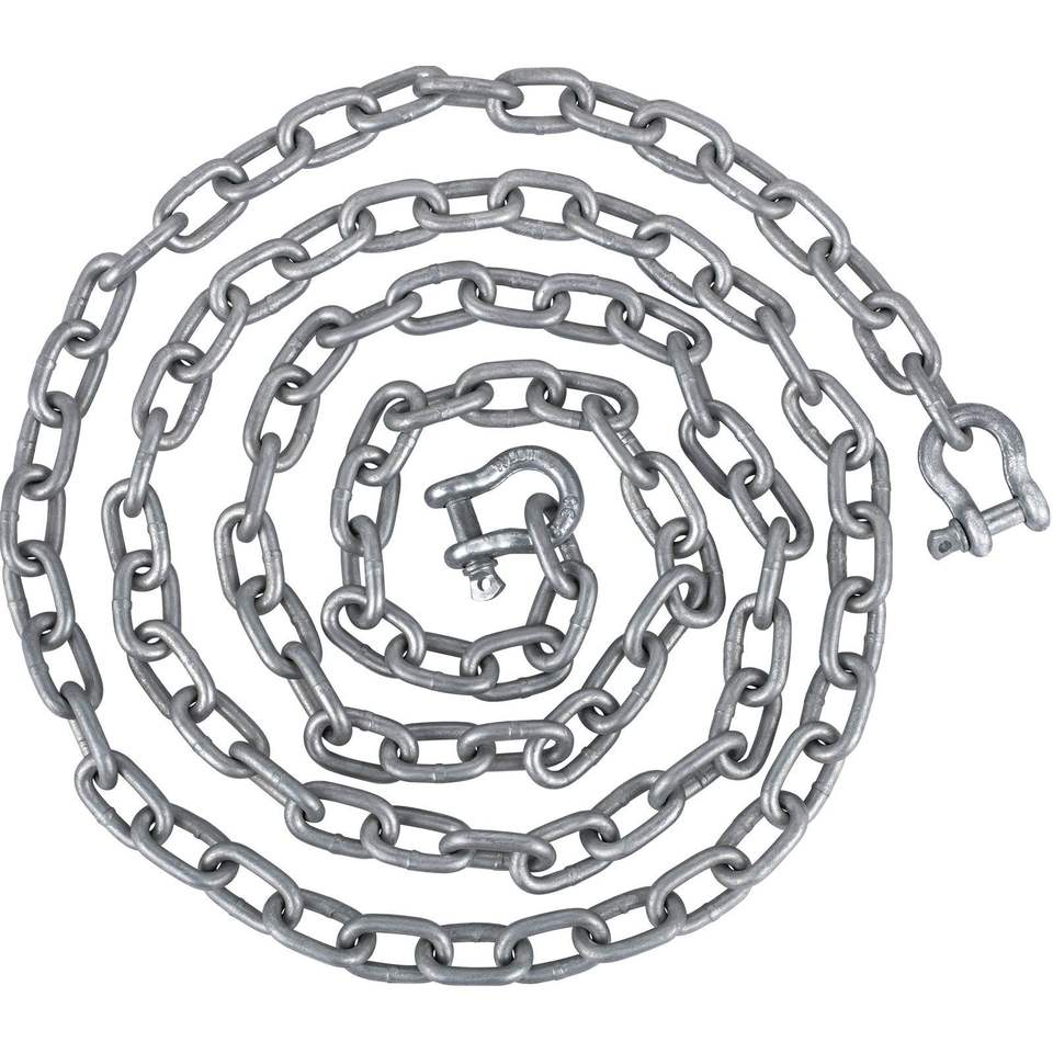 โซ่เหล็กชุบสังกะสีขนาด 10 x 5/16 นิ้ว พร้อมห่วงโซ่ขนาด 3/8 นิ้ว รับน้ำหนักได้ 11650 ปอนด์ แรงดึงขาด 9460 ปอนด์ สำหรับอุปกรณ์ทางทะเล