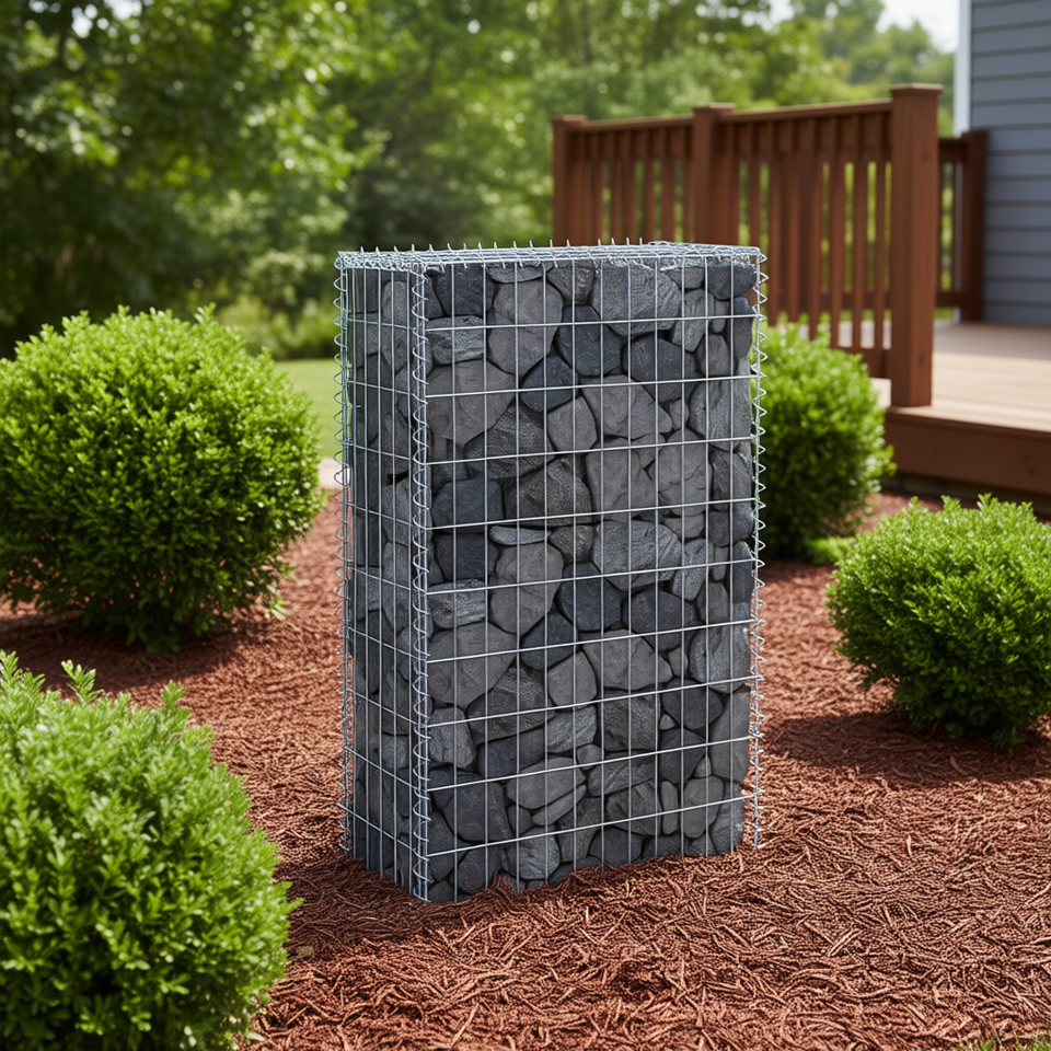 กำแพงกาเบียนเหล็กชุบสังกะสี ขนาด 23.6x11.8x39.4 นิ้ว พร้อมฝาปิด สำหรับจัดสวนและปูพื้นระเบียง