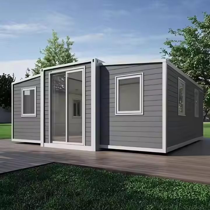 บ้านภาชนะเหล็กชุบสังกะสีแบบเคลื่อนที่ได้บ้านหลังเล็กๆแบบสำเร็จรูปพับได้ประกอบเร็ววิลล่าหรูขยายได้