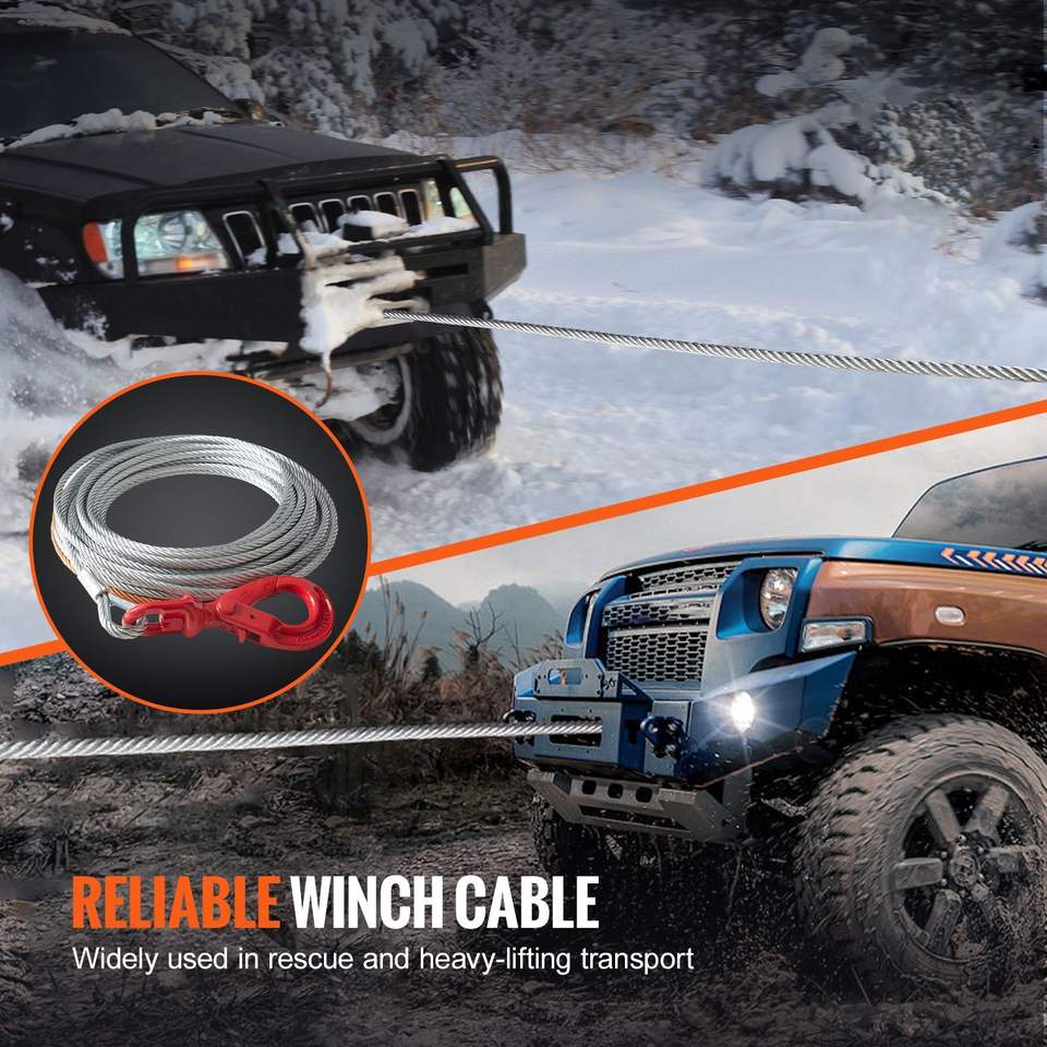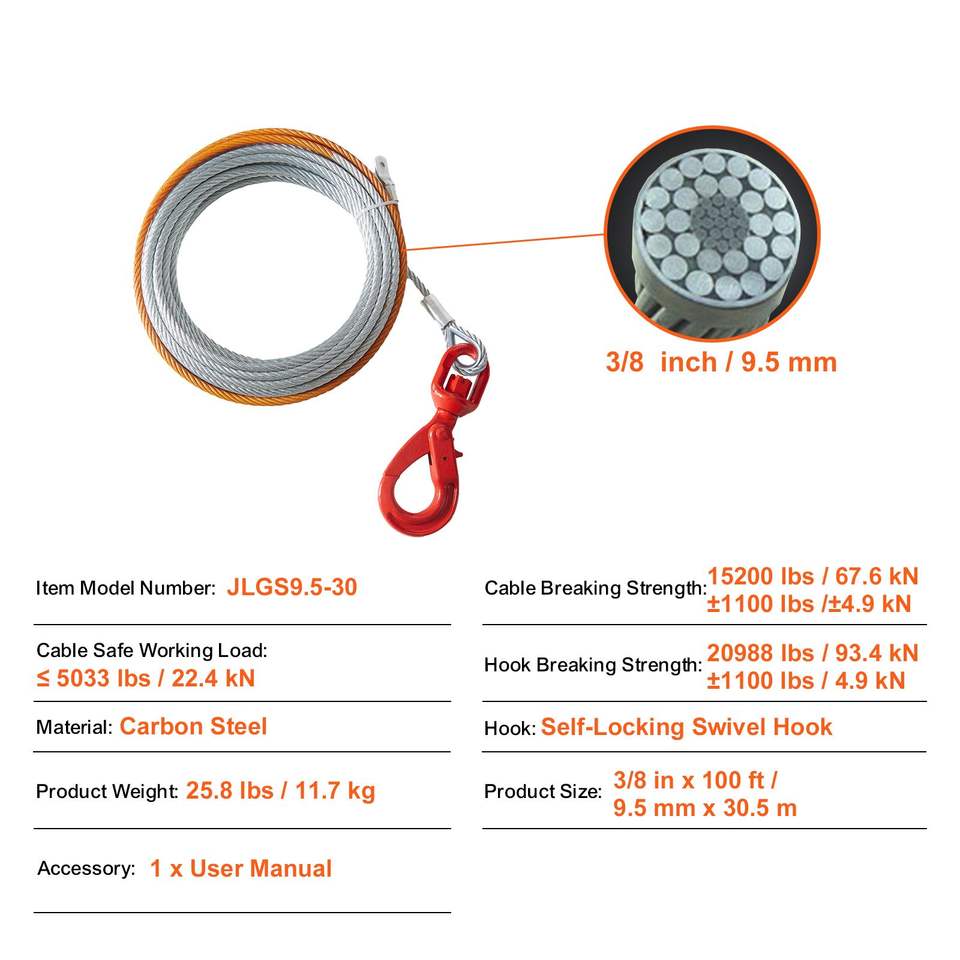 Galvanized Steel Winch Cable 3/8 Inch X 100 Feet 15,200 Lbs Breaking Strength Wire Winch Rope with Swivel Hook Towing Cable