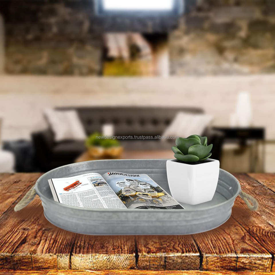 โต๊ะกาแฟรูปไข่ทำจากไม้กัลวาไนซ์ตกแต่ง X12สี่เหลี่ยมถาดเสิร์ฟพร้อมที่จับขนาด16 "สไตล์โมเดิร์นสำหรับบ้านไร่