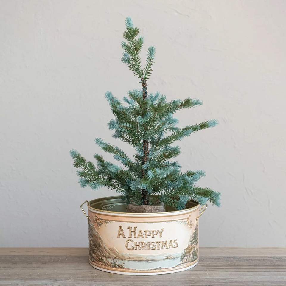 ถังคริสต์มาสโลหะชุบสังกะสีพร้อมที่จับเชือกเหมาะสำหรับบ้านไร่การตกแต่งภายในงานรื่นเริงหรือการจัดแสดง