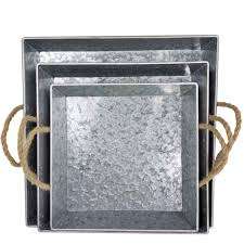 ถาดโลหะชุบสังกะสีสำหรับตกแต่งโต๊ะกาแฟแบบชนบทใช้ในฟาร์มและงานนำเสนอบาร์บีคิวอาหารในสวนหลังบ้าน