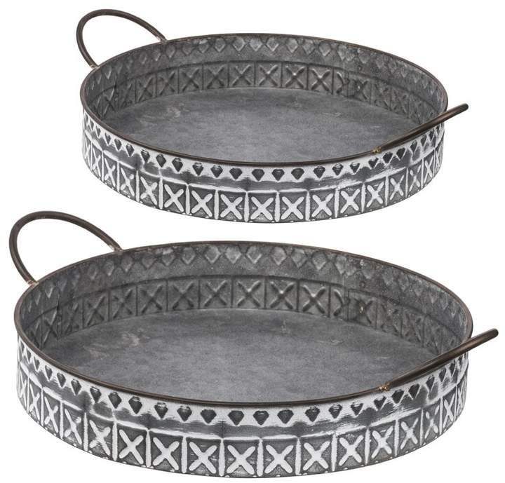 ถาดเสิร์ฟเหล็กชุบสังกะสีพร้อมพื้นผิวขนาดใหญ่และขอบแบบเรียบง่ายเหมาะสำหรับการตกแต่งในร่มกลางแจ้ง