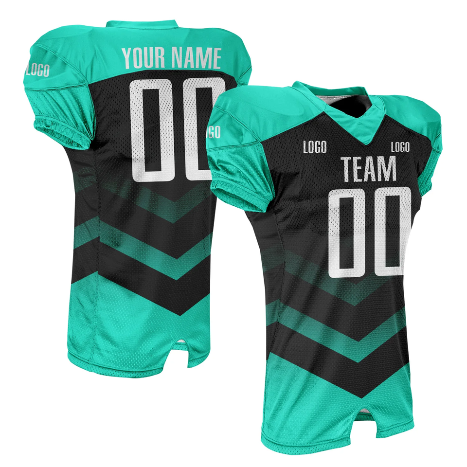เสื้อฟุตบอลอเมริกันแบบกำหนดเองแขนสั้นสำหรับวันแข่งขันพร้อมตาข่ายเย็บแบบว่างเปล่าสำหรับชื่อหมายเลขผู้เล่นของทีม