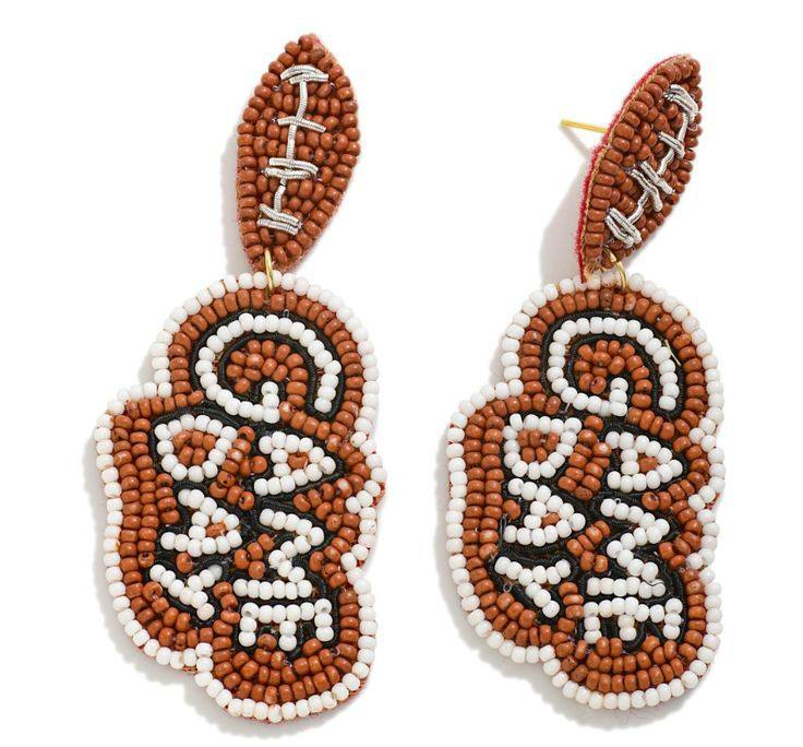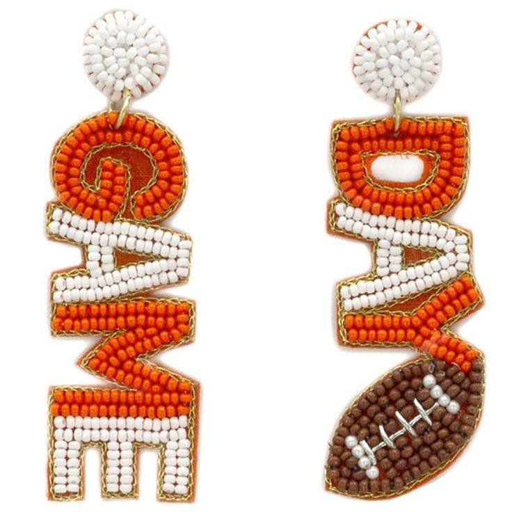 ตุ้มหูวันเกมสีฟ้าวันที่ผ่านมาปักเมล็ดพันธุ์ลูกปัดต่างหูฟุตบอลวันเกมสีขาว