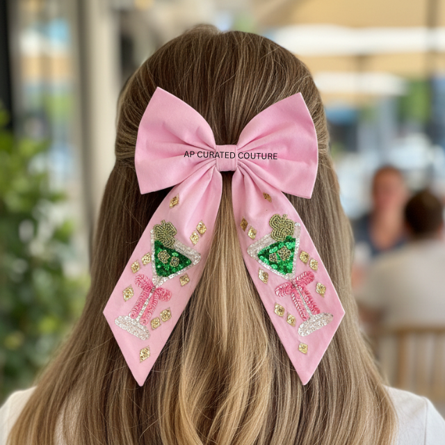 ที่คาดผมปักลายลูกปัดทำมือสีทีมสำหรับวันแข่งขัน พร้อมโบว์ติดผมแบบจระเข้ สไตล์แฟชั่นสำหรับสนามกีฬา