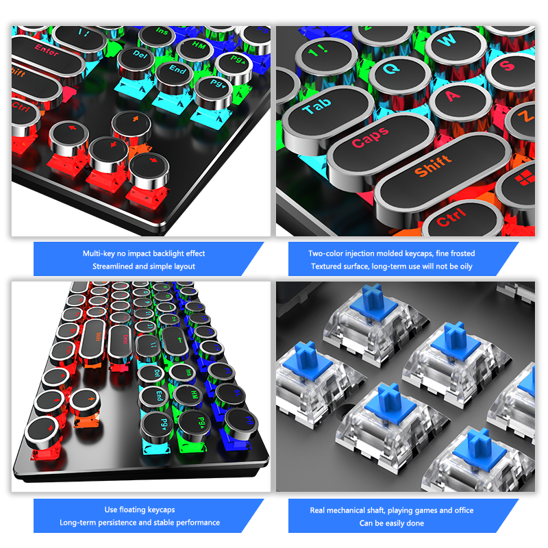 คีย์บอร์ดแบบมีสายสำหรับเล่นเกมออฟฟิศแบบพังค์ปุ่มมัลติมีเดียแบบกลไกจริงพร้อมไฟ RGB backlit