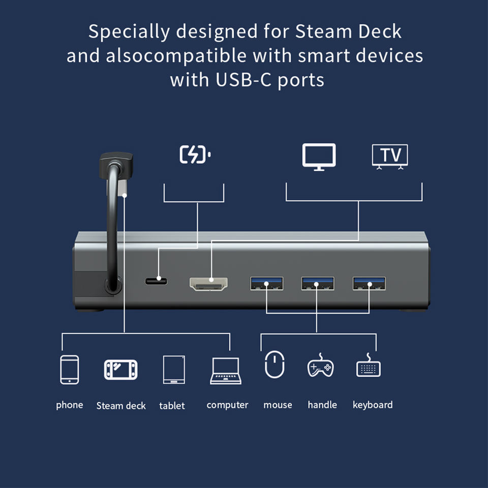 แท่นชาร์จไอน้ำสำหรับเล่นเกม USB C ไปยังอะแดปเตอร์4K 6 in 1 USB C ดองเกิล USB พอร์ต3.0ใช้ได้กับโต๊ะอบไอน้ำ