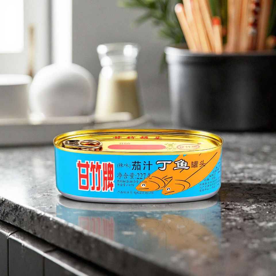 ปลากระพงกระป๋องยี่ห้อกันจู 227 กรัม รสซอสมะเขือเทศเผ็ด พร้อมรับประทาน อาหารกระป๋องสำหรับมื้อเร่งด่วนและโจ๊ก ขายส่ง
