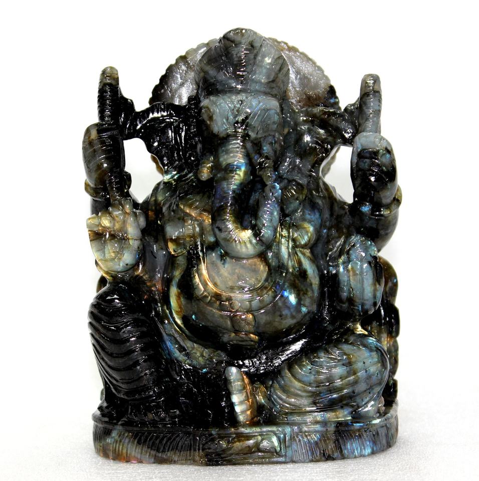 พระพิฆเนศแกะสลักรูปปั้นลาบราดอไรต์ที่มีพลังงานทางจิตวิญญาณงานฝีมือหินกึ่งมีค่าสำหรับตกแต่งทางจิตวิญญาณ