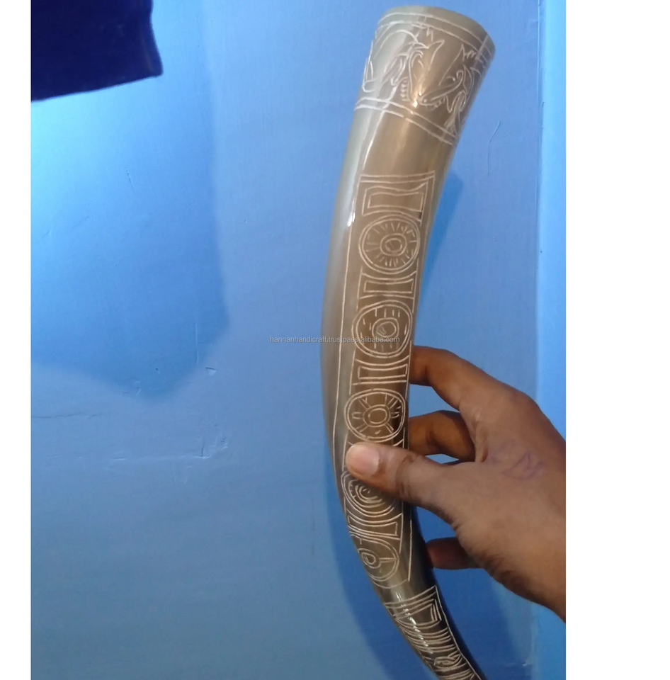 Gani Craft Impex Improved Hand-Carved Polished Eco-Friendly Natural Ox Drinking Horn Stand Love for Home Christmas Decorations