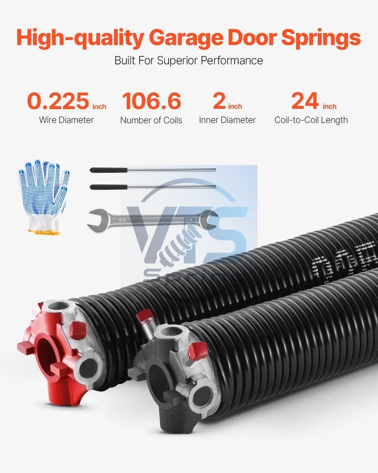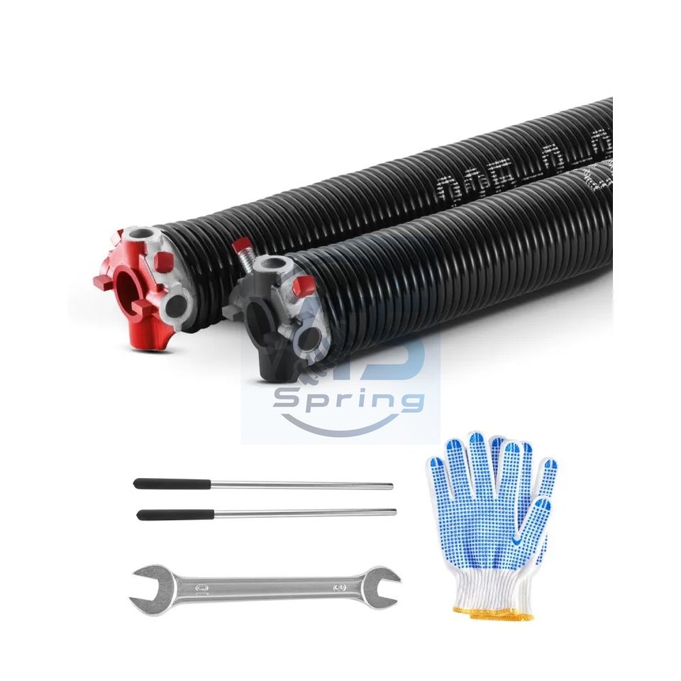 สปริงประตูโรงรถแบบทอร์ชั่น คู่ ขนาด 0.25x2x30 นิ้ว 16000 รอบการใช้งาน เหล็กเคลือบอิเล็กโทรโฟรีซิส พร้อมแถบกันลื่น ถุงมือสำหรับติดตั้ง