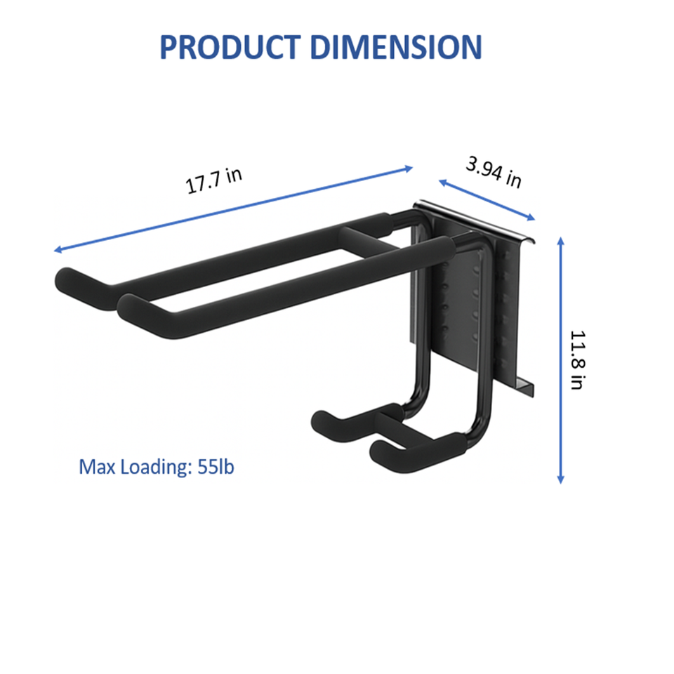 ตะขอแขวนอเนกประสงค์แบบคู่สำหรับเครื่องมือหนัก รับน้ำหนักได้สูงสุด 55 ปอนด์ ตะขอแขวนเครื่องมือไฟฟ้า สีดำ รุ่น GAPGAR006