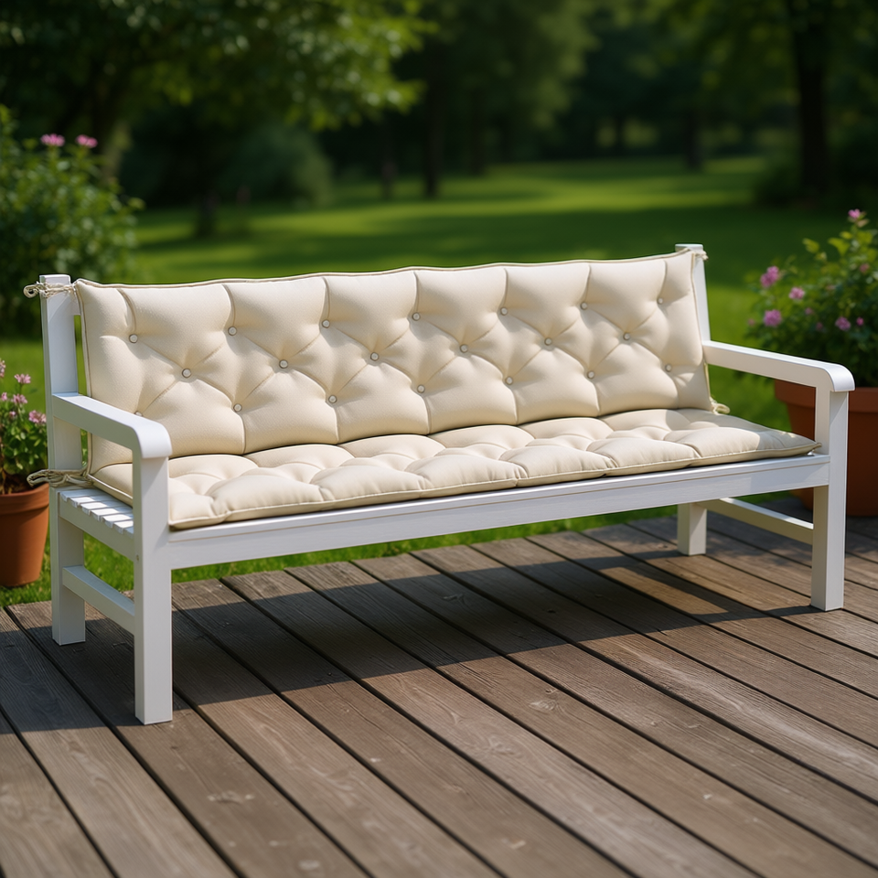 เบาะรองนั่งในสวน สีครีมเมลันจ์ 79x20x2.8 นิ้ว หมอนอิงกลางแจ้งแบบเย็บติดกัน กันน้ำ ถอดซักได้