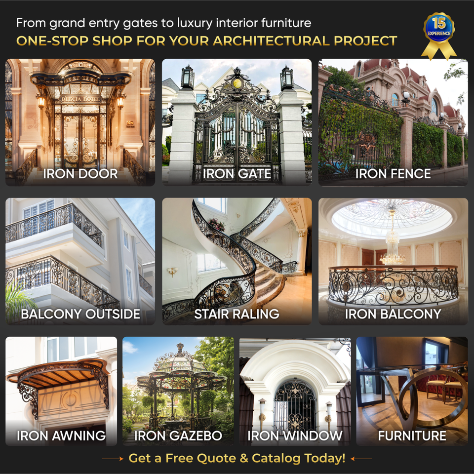 ประตูรั้วเหล็กดัดแบบเรียบง่ายทันสมัยสำหรับสวน ออกแบบ CAD ตามสั่ง ประตูบานเลื่อนแบบวิลล่า 3 มิติ ผลิตในเวียดนาม