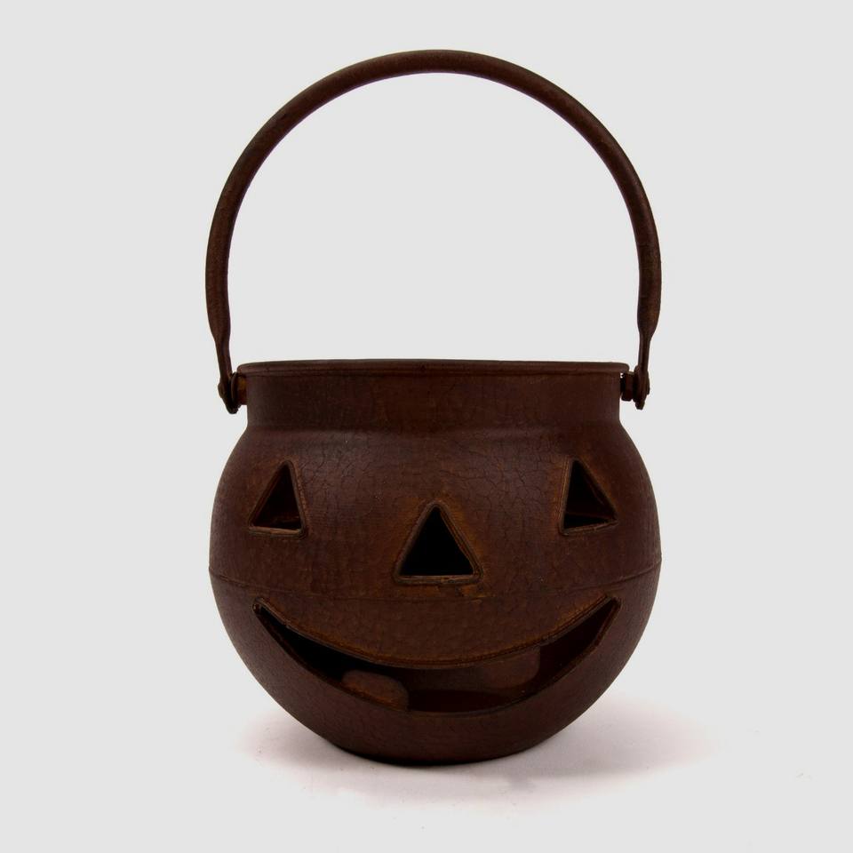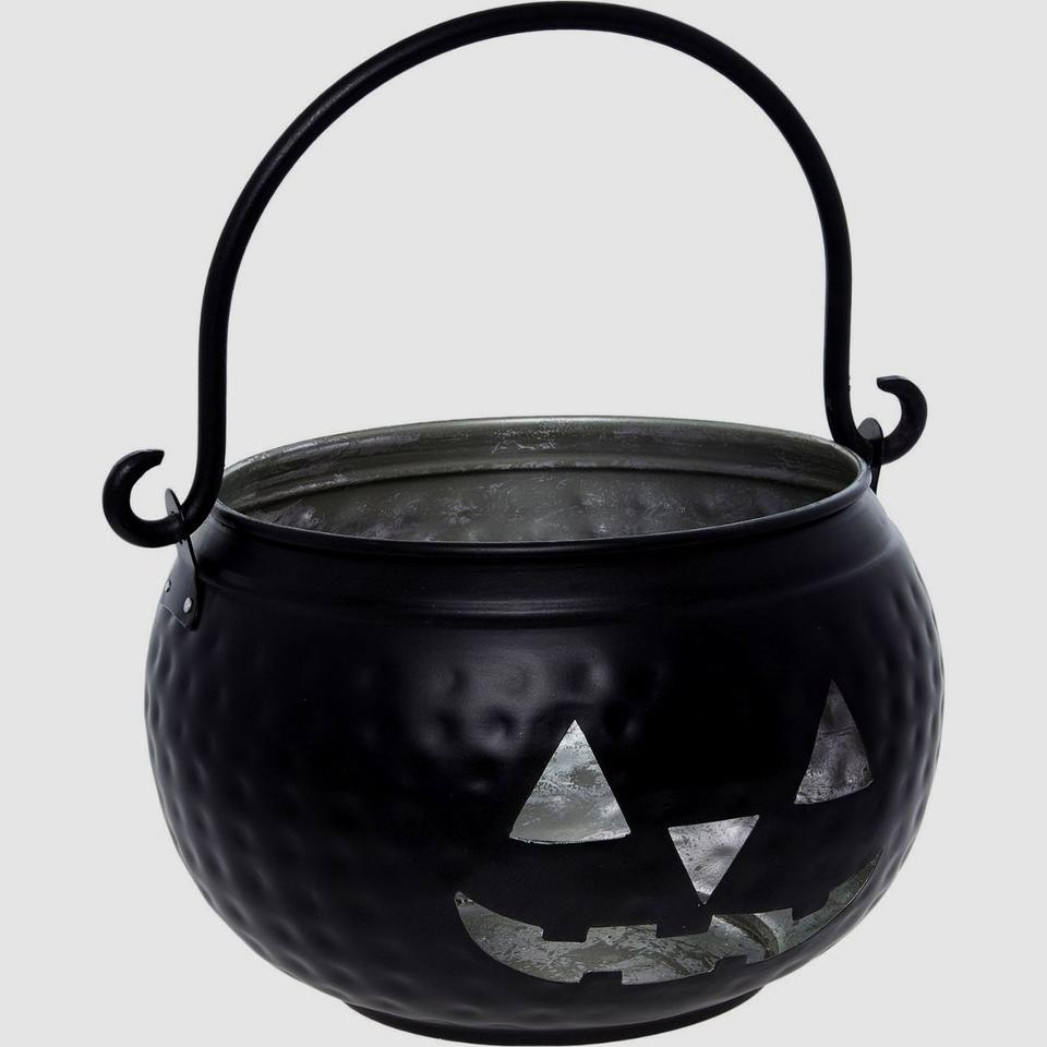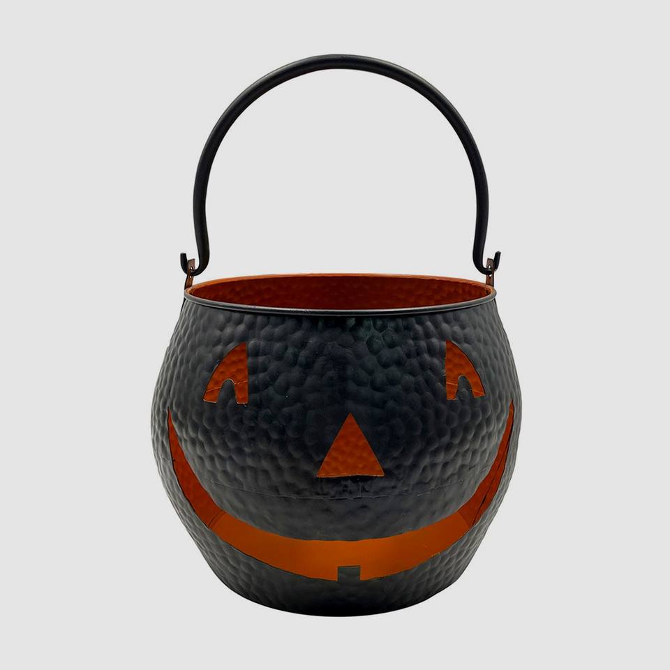 ถังใส่ขนมโลหะสำหรับตกแต่งฮาโลวีน แขวนได้ ใช้สำหรับงานปาร์ตี้ ตกแต่งบ้านทั้งภายในและภายนอก