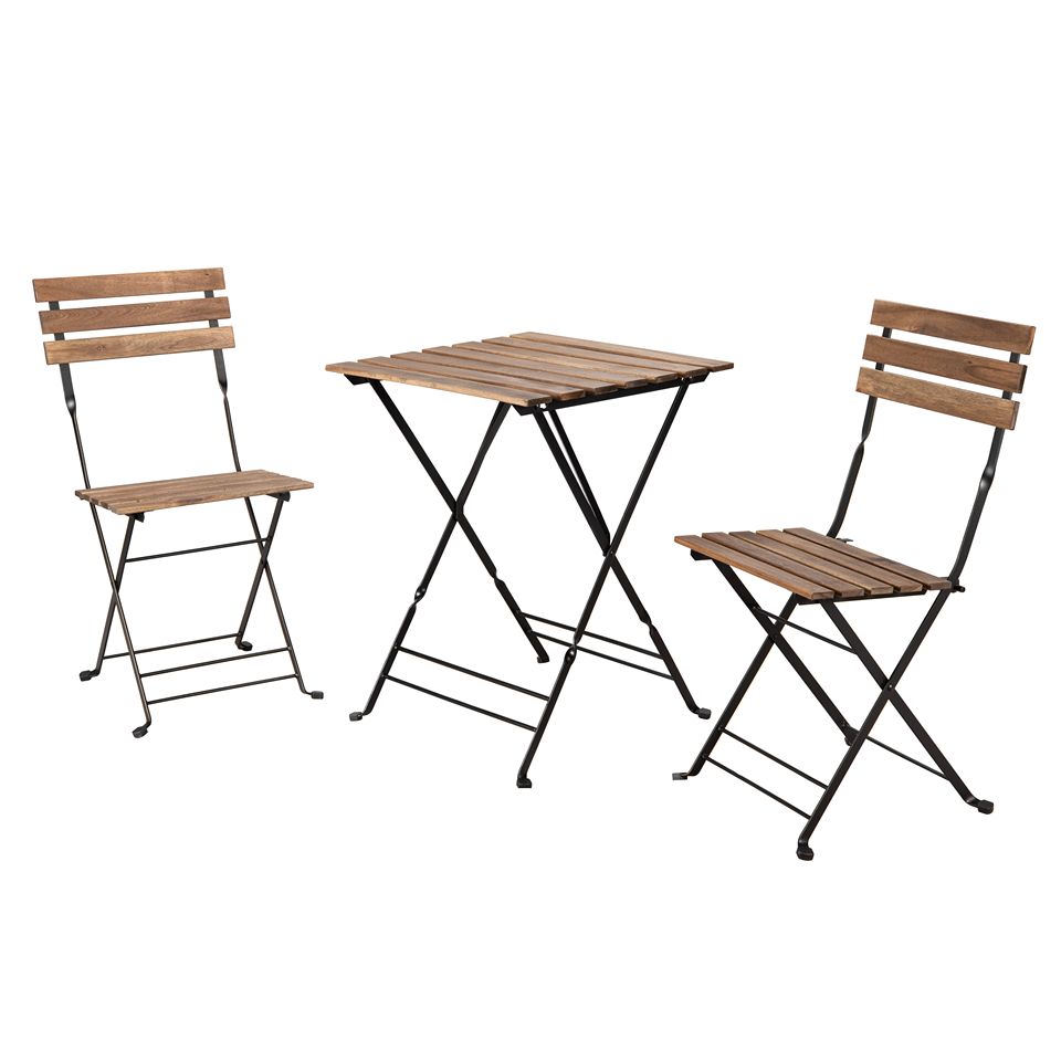 ชุดโต๊ะกาแฟไม้กระถินณรงค์ 1 ตัว พร้อมเก้าอี้ 2 ตัว สำหรับการพักผ่อนแสนสบาย เฟอร์นิเจอร์กลางแจ้งทันสมัยสำหรับลานบ้าน ระเบียง หรือสวน สามารถพับเก็บได้