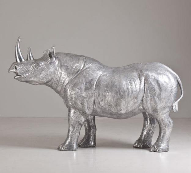รูปปั้นแรดขาวทำจากอลูมิเนียมหล่อขนาดเท่าชีวิตจริงรูปปั้นตกแต่งสวนรูปปั้นทองสัมฤทธิ์