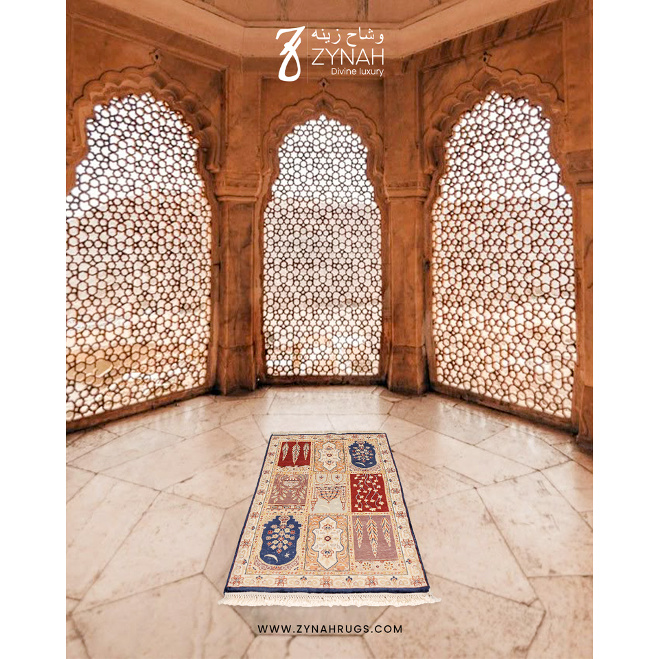 พรมละหมาดแบบพกพา ลายดอกไม้ ผ้าไหมแจ็คการ์ด ทำมือ/เครื่องจักร ซักได้ พร้อมเบาะรอง ขนาด 27x42